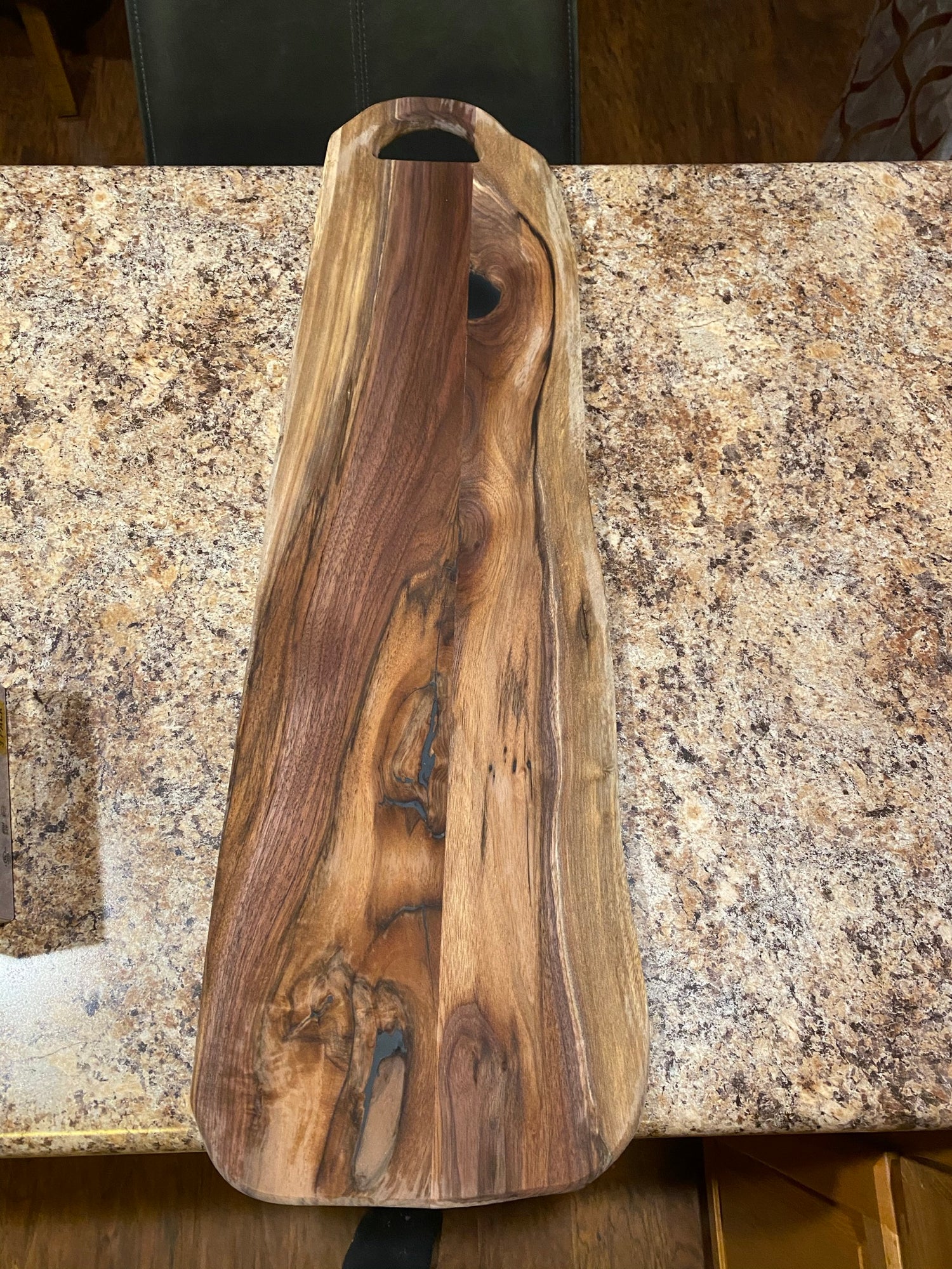 "Our party guests are always raving about our live edge walnut board! We use it for every gathering. "